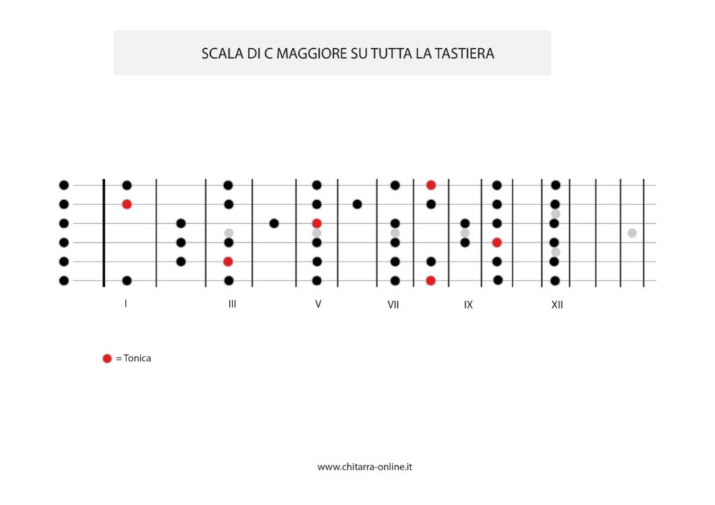 Le posizioni della scala maggiore sulla chitarra (tutta la tastiera)