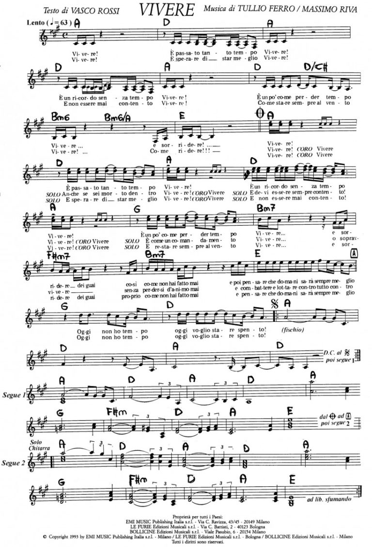 Musica Italiana per chitarra Vivere di Vasco Rossi Clicca sul link del nome della canzone...