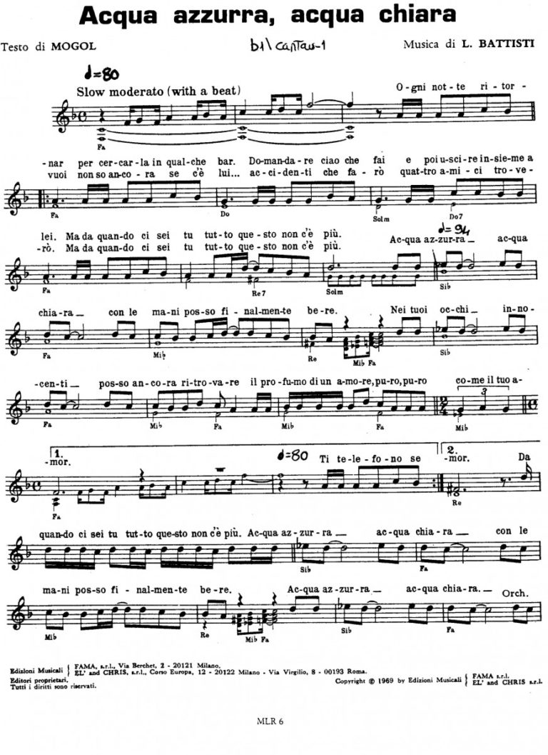 Musica Italiana per chitarra Acqua Azzurra, Acqua chiara di Lucio Battisti Clicca sul link del...